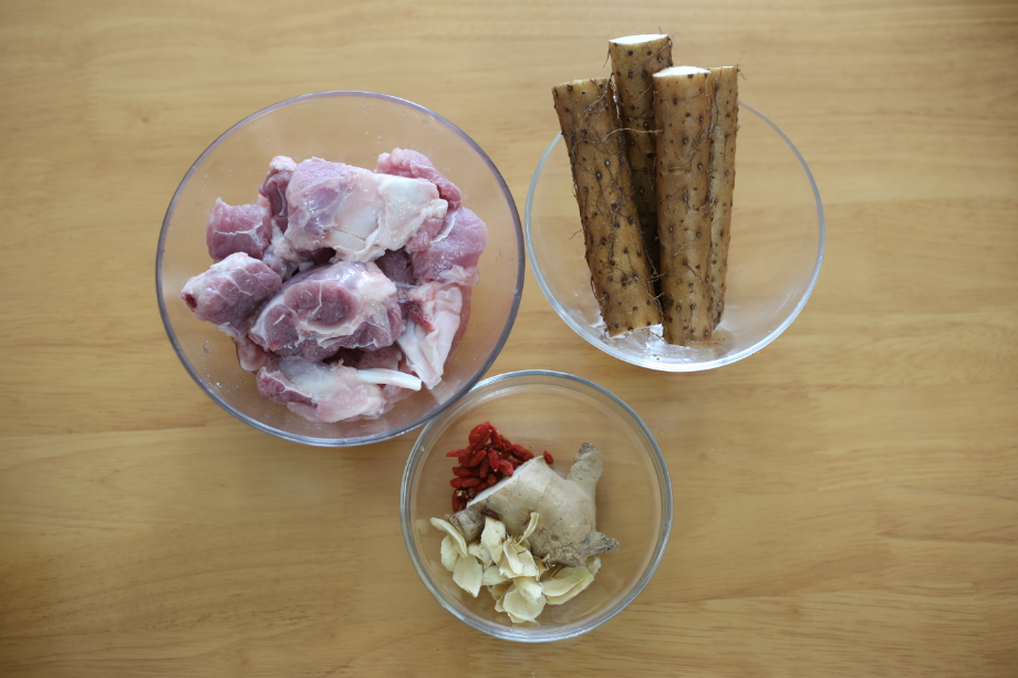 山藥300克、排骨700克、白胡椒粉2克、料酒15克、姜片4片、枸杞1小把、百合5克、清水適量、鹽適量