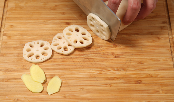 豬骨洗凈,冷水入鍋,加入姜、料酒,焯水。