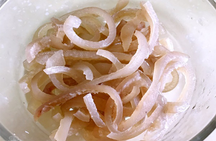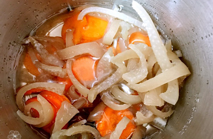 今天我們給大家介紹一款用蘇泊爾新出的豆?jié){機制作的高顏值、營養(yǎng)豐富的菜肴----蔬菜版豬皮凍,既為上班族們節(jié)省很多時間,用一鍵式就能為家人帶來美味的餐點,同時也是適合孩子吃的手指食物。 豬皮是一種蛋白質(zhì)含量很高的肉制品原料。豬皮里蛋白質(zhì)含量是豬肉的2.5倍,碳水化合物的含量比豬肉高4倍,而脂肪含量卻只有豬肉的一半。經(jīng)常食用豬皮有延緩衰老的作用。因為豬皮中含有大量的膠原蛋白,能減慢機體細胞老化。有滋陰補虛,養(yǎng)血益氣之功效;出現(xiàn)咽喉疼痛、低熱等癥的患者食用更佳。把蔬菜加入進去,一定程度上也能讓不愛吃蔬菜的小朋友吃到更多的營養(yǎng)。今天我們給大家介紹一款用蘇泊爾新出的豆?jié){機制作的高顏值、營養(yǎng)豐富的菜肴----蔬菜版豬皮凍,既為上班族們節(jié)省很多時間,用一鍵式就能為家人帶來美味的餐點,同時也是適合孩子吃的手指食物。 豬皮是一種蛋白質(zhì)含量很高的肉制品原料。豬皮里蛋白質(zhì)含量是豬肉的2.5倍,碳水化合物的含量比豬肉高4倍,而脂肪含量卻只有豬肉的一半。經(jīng)常食用豬皮有延緩衰老的作用。因為豬皮中含有大量的膠原蛋白,能減慢機體細胞老化。有滋陰補虛,養(yǎng)血益氣之功效;出現(xiàn)咽喉疼痛、低熱等癥的患者食用更佳。把蔬菜加入進去,一定程度上也能讓不愛吃蔬菜的小朋友吃到更多的營養(yǎng)。