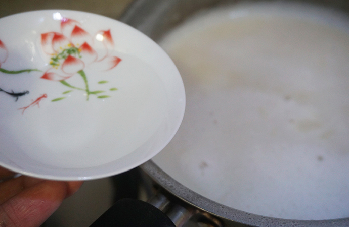 自制豆腐腦,并不難。選用非轉基因黃豆,浸泡一夜后,可用低速研磨的原汁機榨取豆漿,過濾后煮沸,再點上內脂,靜候十分鐘便可吃上香濃嫩滑的豆腐腦。
