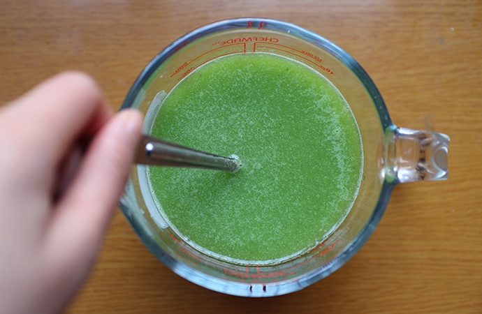 4、榨好的果蔬汁加入適量的蜂蜜攪拌均勻即可飲用