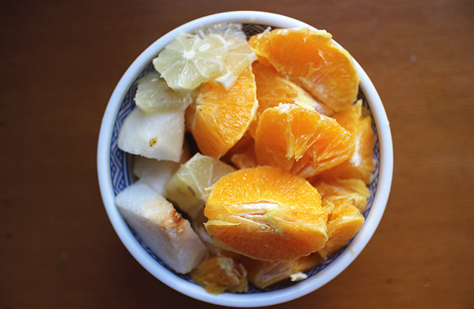 【主料】:柳橙3個、雪梨1個、檸檬小半個、吉利丁10克