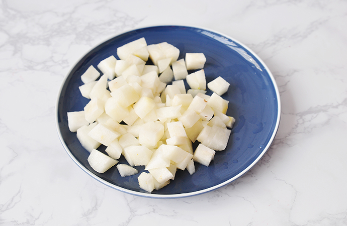 3、梨切成小丁