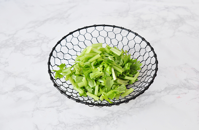 2、芹菜可選用較細的山芹,味道更贊