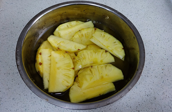 菠蘿不光是酸酸甜甜的十分好吃,他還有減肥的功效你知道嗎?菠蘿幾乎含有所有的人體所需的維生素,并能有效幫助消化吸收。菠蘿減肥的秘密在于它豐富的果汁,能有效地酸解脂肪,可以每天有效地在食物中搭配食用菠蘿或飲用菠蘿汁,但是切忌過量或食用未經處理的生菠蘿,第一容易降低味覺,刺激口腔粘膜;第二,容易導致生產菠蘿蛋白酶,對這種蛋白酶過敏的人,會出現皮膚發癢等癥狀。