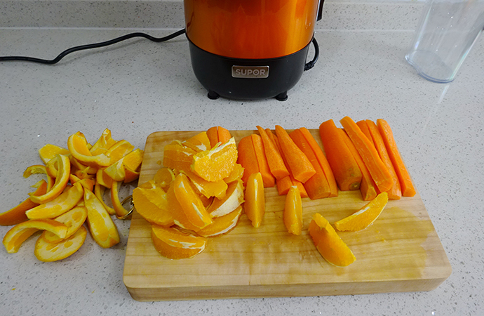 雖然多吃胡蘿卜的益處很多,但要是每頓飯都吃胡蘿卜估計早晚會吃膩,而且畢竟現在人們的飯量都減少了,又能吃多少胡蘿卜是吧?既然吃不了多少,那我就干脆喝吧!用蘇泊爾原汁機將胡蘿卜榨汁喝,為了豐富口感,我加了些橙子一起榨汁,做好以后簡直是又好看又好喝,幾根胡蘿卜呼嚕嚕一下就給喝光了,而且酸酸甜甜十分好喝,我打算今后要給家里人常做這個胡蘿卜橙汁喝。