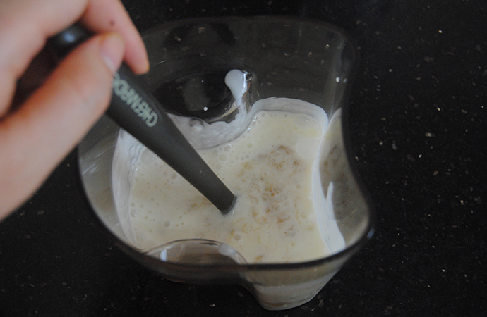 9. 準備好模具,倒入1/3的香蕉酸奶