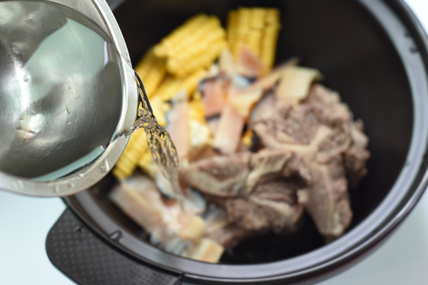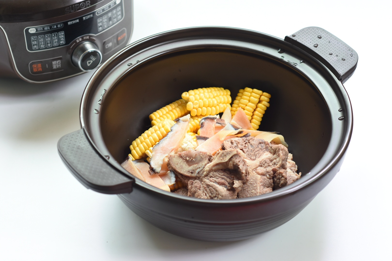 一鍵式的砂鍋慢火細熬,將牛骨中的膠原蛋白慢慢淅出,