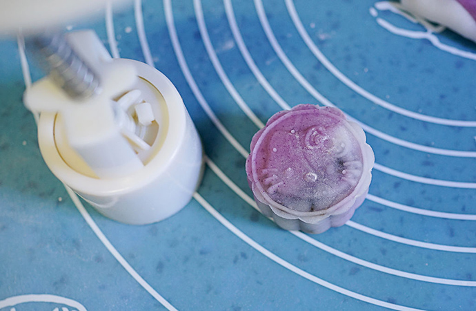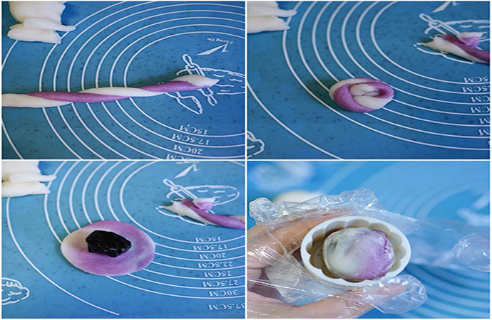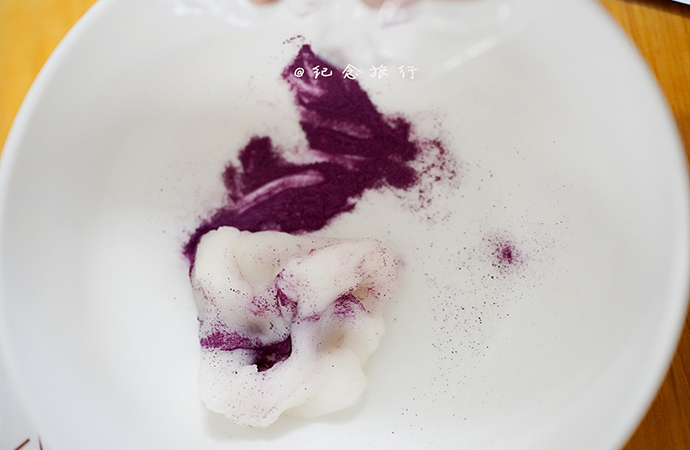 9. 取四分之一加4-5克紫薯粉揉勻