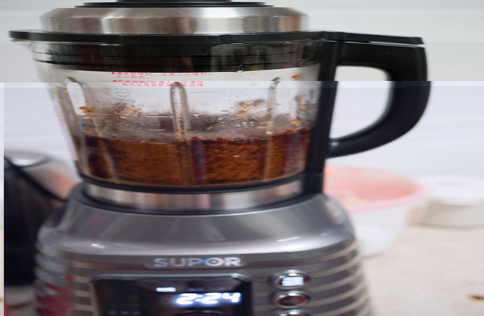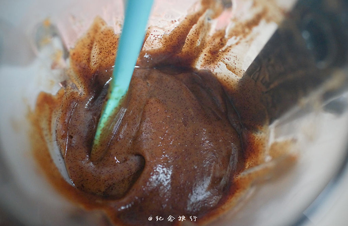 3. 加適量水打成細(xì)膩的泥,破壁機(jī)打起來更細(xì)膩,要是沒有破壁機(jī)建議過篩去皮,這個過程就比較繁瑣了,水加的越多后期炒餡花費的時間相應(yīng)更長,所以加水以能順利運轉(zhuǎn)打成泥為準(zhǔn),按醬汁鍵打三分鐘即可