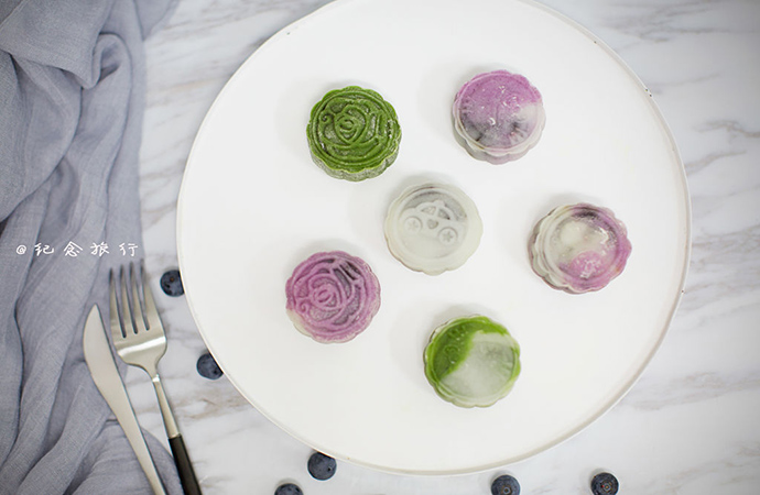 15. 冰皮月餅花紋可以自己選擇喜歡的就可以啦,我的是50g的模具,餅皮跟餡是1:1,月餅熱量很高所以50g一個。小小一個已經(jīng)差不多了