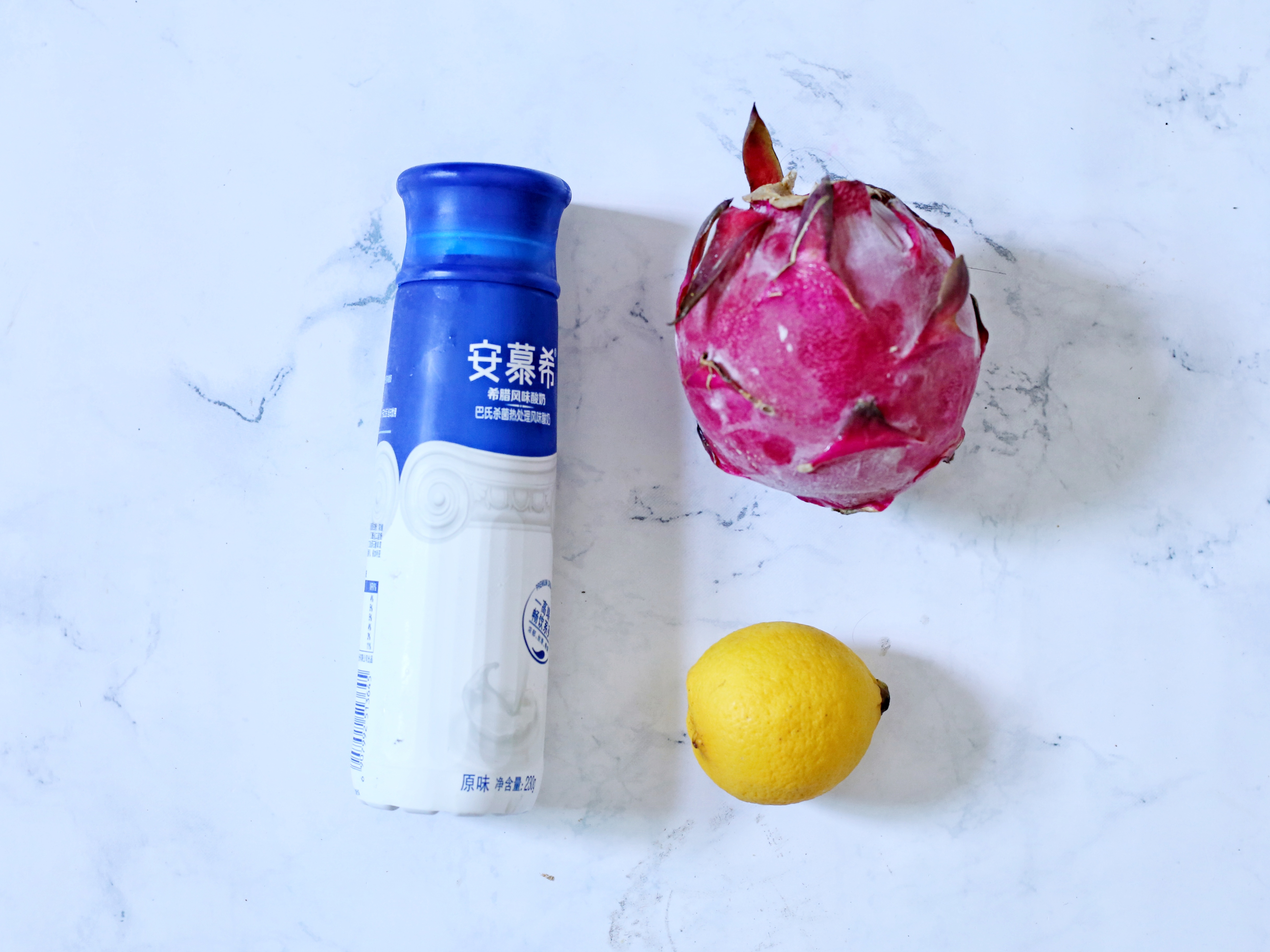 火龍果1個、酸奶230g、檸檬半個