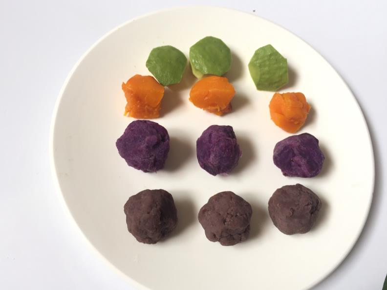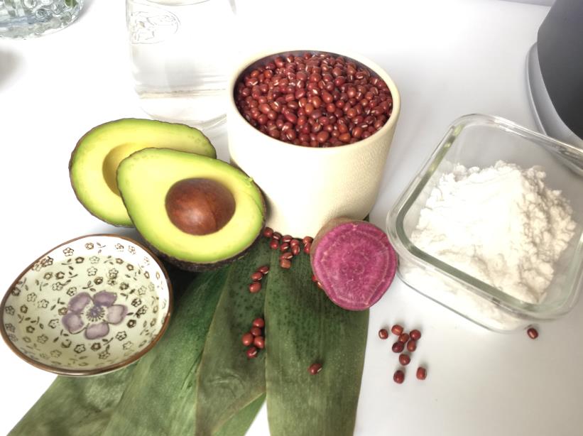 主料:水晶粉100克,紅豆200克,紫薯一塊,牛油果一個,南瓜一塊