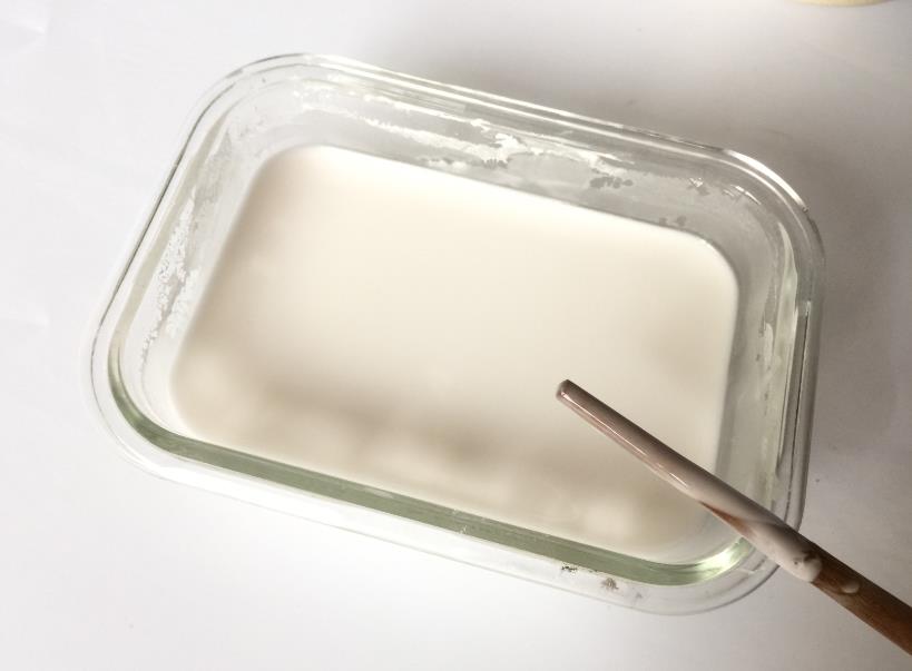 7、 糖漿加50克水燒開,與水晶粉拌勻后上鍋蒸20分鐘(粉糊變得透明既成熟了,這里不要過度攪拌,不然會有很多小氣泡)