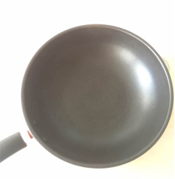 平底鍋底部受熱后發(fā)生膨脹,會產(chǎn)生一定量的內(nèi)凸,底部形成球面.在設(shè)計時我們要求上凸高度在3MM左右是正常;用時可旋轉(zhuǎn)鍋具、翻動食物來達(dá)到鍋內(nèi)油量均衡